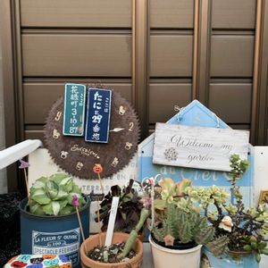こんばんは🌙.*·̩͙ 1枚目 🏷錦の日 🏷牛の日 🏷金曜日の蕾たち などで投稿させて頂きます。 フラリエでお迎えした、アエオニウムビックバン、アエオニウムレッドフジ錦 しばらく右膝が曲げられず植え替え 延期になってます😅 なので買って来たままです😅 ずっとこのままだったりして🤣🤣 七宝樹、よーく見ると小さい新芽がニョキって、🏷は七宝樹なんだけど やっぱり錦だよねー!(/*^^)/ フェルニア、蕾が出てきました。 ピンクぽいお花が咲くフェルニアです。 さくら餅子ちゃんから頂いたペコちゃんと牛のリメ缶 先月はまだあった多肉がいつの間にか☆になってた〜😨 2枚目 🏷錦の日 45ちゃんから頂いた鏡花 なかなか殖えないって思ってよく見たらベビー👶の🐌 小さくても食欲旺盛らしい( ̄▽ ̄;) お向かいの道路の奥の草🌱ボーボの駐車場🅿️へ強制引越しして貰いました。😁 3枚目 🏷一日遅れてめんごめんご 🏷にぃさんの日 🏷センペルンルン木曜日 撮ったのに寝落ちZz。_:(ꈍ﹃ꈍ」 ∠):_🤣🤣🤣 チキン🐔の勢揃い ぷりまみちゃんのリメ缶の空飛ぶ🐷 にびっくり👀してる? 何時もは夏越し出来ずに☆になる バニラシフォン、なんとか生き延びてます🤣 隣のオリオンは急に調子が悪くなり風前の灯😮💨 4枚目 🏷ハロウィン月間 畑にかぼちゃ🎃 綺麗なオレンジ色になっていて まるでハロウィン用の作り物みたいです😁 5枚目 🏷一日早くてめんごめんご 🏷さくら餅子さんの素敵便 🏷ペコちゃん祭り 夏に原種ハイビスカス🌺ロバツスの投稿で種取り出来たら送って頂く事になったのですが、種以上に沢山の 素敵な物を送って頂きました。 火曜日には届いていたのですが💦 仕事で受け取れず、その後もなかな出来ず、ペコちゃん祭りの前日に投稿になりました😅 遅くなりすみません🙇♀️ 👈ミィの円形コースター 餅子ちゃんの手描きで可愛いです 裏側にも絵がありますが、披露は又今度✋🙂 飾れるようにイーゼル付けてくれました。 他にシマエナガピック ポケットティッシュ チョコ入りのペコちゃんの缶 それからずっと手の痛みがあって 削る事が出来ないとムーミンの スクラッチアート🎨も頂きました。 いっぱい (*´∀人)ありがとうございます♪ 種まきと スクラッチ早くやろうと思います。