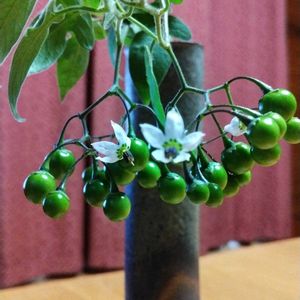 おはようございます☀ 爽やかな一日になりそうな朝です。 昨夕、ウオーキング中であったヒヨドリジョウゴです。 まだ実が緑で花も可愛いです。