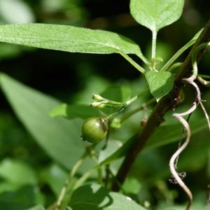 🌀つる性多年草🌀 花の後に 赤く熟す小さな実 (液果)を付けます(直径8mm) 💦果実は草刈り✂️があったようで わずかに残っているだけ(残念) ③④2025年8月31日に撮影 鵯上戸(ひよどりじょうご) ナス🍆科