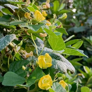 ノアズキ(野小豆) マメ科ノササゲ属のつる性多年草 別名 ヒメクズ(姫葛) 本州、四国地方、九州地方に分布 公園の植栽の木に巻きついて、 遠くからも、花の黄色が目立っていました。 エンドウ豆に似た実を、沢山つけて、今年も、豊作です😅
