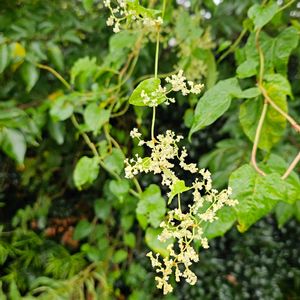 イタドリかと思い近づいた白い花は ツルドクダミでした 初めての出会いです つる性で白い小さな花をたくさんつけ クスノキに覆い被さり 空き家の屋根まで覆っていて 何という繁殖力だろう!