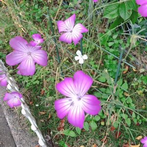 🌸花びらの形が重なっています🌸 ウォーキングで いつも立ち寄るわんこのそばに 植えてありました。 茎が スーッと長いです。 名前わかる方教えてください🤗 🌸🌿🌿🌿🌸🌿🌿🌿🌸 花好きさんに回答いただきました。🙇♀️ 🌸アグロステンマ🌸 別名 麦撫子(むぎなでしこ) 和名 麦仙翁(むぎせんのう)