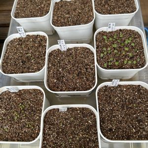 メセンの実生の季節がやっと来た 小さいのがなんとか出てきた 老眼が恨めしい、もう進みませんように