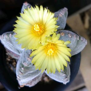 昨日咲いた瑞昌玉、6番花。 暑さと闘いながらも、なんとか小さなお花を咲かせて見せてくれました✨ 6番花といっても、これまでに脱落した蕾は数知れず🥲 花見は貴重だけれど、たくさん咲かせて本体が消耗するよりはいいのかもしれないな。 暑かったので部屋で記念撮影。 森のサボテンとコラボしました。 今日は仕事なので全開💠は見れません。