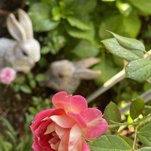 おはようございます♪ 今朝の庭 ミニ薔薇 開花 パキベリア ちょこっと写してみました 🌱🌱🐸🐸🚰🌱🌱🎶🐸🪴