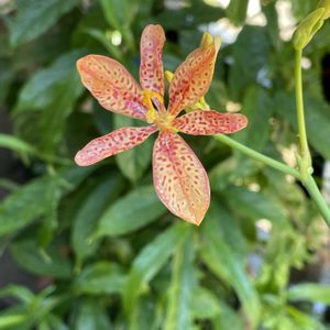 こんにちは♪ 今朝の庭〜 ヒオウギが咲いています ベランダ 2株8月迄見れそう^ - ^ 🪴 ガイラルディア ペチュニア またネ🥤🍧