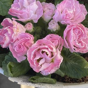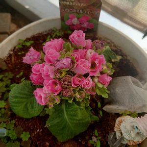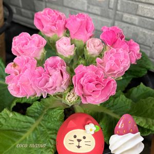 今日のお花🌸プリムラ🩷2枚目 バラ咲きジュリアン いちごのミルフィーユです。 まだあまりお花咲いてないけど… すごくかわいいです💕