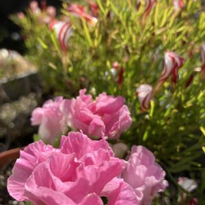 バラ咲きジュリアン 三姉妹🩷 微妙に色違いで元気に仲良く 咲いてくれています🤗💕