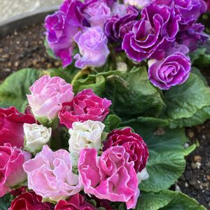 おはようございます(*´꒳`*) 今日のpicはベランダのバラ咲きジュリアンたちですෆ˚* みんな美味しそうな名前ꉂ 🤭 プリムラ系は葉っぱが大きくて野菜みたいといつも思ってます笑 植え付けの時によく葉っぱ痛めちゃう…( ˊᵕˋ ;)