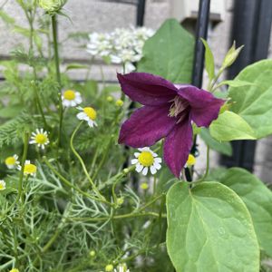 クレマチス 1番花咲きました☺️ ①サマリタンジョー 1番花、蕾の時にぽつんと虫食い穴があいていましたが、無事にさいてくれました。 ②ロードハーシェル もう少しで開きそう