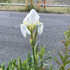 ①②ニオイイリス 舗道の植栽 朝一に散歩でパチリ🤳 これも春先の好きな花。 上弁(内花被片)が丸く抱き合うように…。 下弁(外花被片)が垂れて付け根にヒゲ🌱 ジャーマンアイリスの祖先の一つらしい⭐️ 故郷の庭先に咲いてた懐かしい春の花♡♡ 🏊♀️プール帰りに通ったら✂︎無くなってました😮💨 なんと世知辛い‥😳🤗