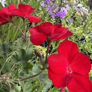 おはようございます🌥️ 今朝のお庭の様子❤️🤍🎶 ①真紅の赤が綺麗な アイビーゼラニウム 写真では本当の色がでないけど 深い赤がなんとも言えないです♥️ ②③ベコニア.センパフローレンス 長年、挿し木で再生しながら 頑張っています✿·͜·ᰔ もりもりになってきました💗 ④ガウラ、この子も挿し木の再生で 長年楽しませてくれてます🎶 ⑤昨年、息子が買ってくれたバイカウツギ、今年は沢山の花が咲いています✧˚₊‧ꕥ