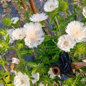 見切り品 半額の文字に 弱い 私😅 白バナに出逢ったら と 思っていましたから 白バナの一鉢 我が家に💕 花言葉は 希望が叶う 八重咲きペンタス ライカホワイト