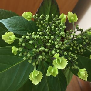 事務所に置いている二季咲きアジサイ、一回目の開花がだいぶ進んできました😊 スプリングエンジェルシリーズ フリルエレガンス 常緑のトキワアジサイと西洋紫陽花のハイブリッドで2月と5月に2回咲く珍しいタイプです💕 二回目も綺麗に咲いて欲しいので、来月早めの剪定を考えています🤔