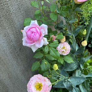 〜今朝のバラたち①〜 昨日投稿したホリデーアイランドピオニー🤍🩷🤍名前通りキレイな芍薬咲きです🌹日光を浴びて中心が鮮やかなピンクに変化しました😆♪色んな表情のあるバラです😙♪ イーハトーブの香 耐病性は弱いとありますが花付きと花持ちと花色と香りが良いので🙆🏻♀️💕暑過ぎて黒星も活動出来ない時期とは言え、タイプ3とは思えない程元気💪 ローズポンパドゥール 一輪咲いてました♪夏でも巻き巻きです🌹春は巻き巻きの大きいお顔がチャームポイント😅
