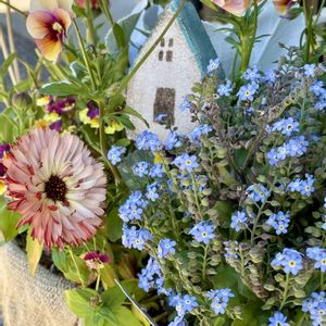 [今日のお花]🩵わすれな草💙 昨年の12月に作ったカゴ寄せ🧺 わすれな草とカレンジュラ、ビオラネメシアが仲良く咲いています😊💕