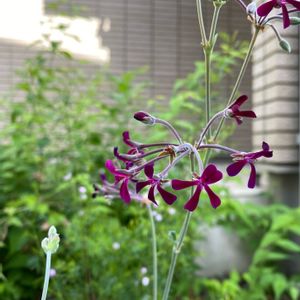 ペラルゴニューム・シドイデスが予想以上の可愛らしさで、メロメロです(*´꒳`*)赤紫の色味が少しずつ違うのがなんとも…✨ お迎え時には花芽が1つでちょっと心配していましたが、2番手の花芽も上がってきました!