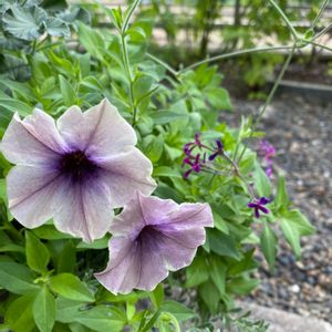 ペチュニアビバ、なんとも上品&絶妙なうっすらパープル✨ コクリュウの控えめなお花、ペラルゴニュームの綺麗な赤紫のお花との相性も最高です(≧∀≦)