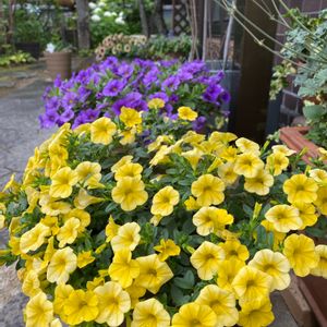 ペチュニアで夏に向けての寄せ植え☀️ 指名買いを狙っていたモンローウォークが手に入って嬉しい(*^^*)初挑戦のコクリュウなどと大人シックを目指して寄せてみました💜 この後、摘心に自信がない私に変わり、友人に摘心してもらいましたヽ(*´∀`)エヘ