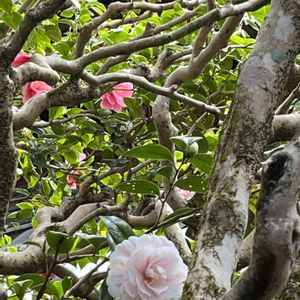 ⁂ 法然院…三銘椿(さんめいちん)の庭 ⁂ ①五色散り椿 ②貴椿(あてつばき) ③花笠椿 ④⑤落ち椿 '25.4.5〜6pic