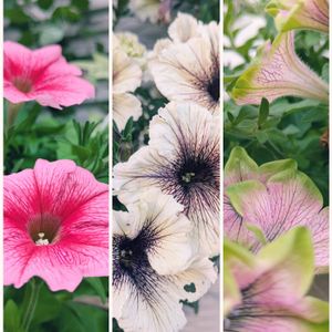 1️⃣ ゲブラナガトヨさんのペチュニア(園芸店) 2️⃣ バイプレイヤー 雨に強いです☔️ 3️⃣ アンティーク 色が変化していくので、3色植えてあるみたいに見えるそうです。 4️⃣ 真輝(まさき) 雨に強い☔️ 花びらが肉厚です。以前育てました。雨に濡れるとしっとりと美しい💚💜