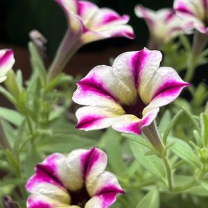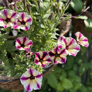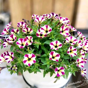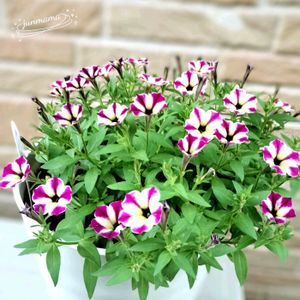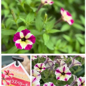スーパーチュニア「ラズベリーチーズ」。2週間前に咲いたお花をイベントで使うのに全てカットして元気過ぎ?の枝を摘心して気持ち小さくしましたがあっという間につぼみが育ってきました。 一輪全部がラズベリーカラーになったものがあってビックリですがあとは概ねきれいなバイカラーで咲いてくれてとてもキュート…! 迷ってお迎えが遅れたので成長は遅めですがやはり強健です。雨には当てないようにしています。