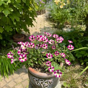 スーパーチュニア ラズベリーチーズ 2年目の株です 春先調子よくなかったですけと頑張って咲いてくれてます☘️