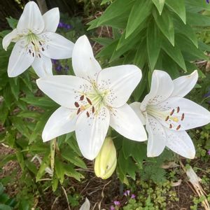 おはようございます😄 散歩道にて🤗 ①ユリ ②アジサイ・ラグランジアン ブライダルシャワー ③アジサイ・アナベルとペコちゃん ④ミニバラとガウラ ⑤チゴザサ(斑入り) 🏷️白い貴婦人✨ 🏷️白い水曜日♡ 🏷️斑入り見つけ隊♪No.23 🏷️2のつく日は斑入りの日 🏷️ペコちゃん祭り 🏷️水曜ローズショー 参加します。