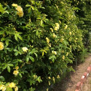 幅6mのモッコウバラ 左半分がモコモコ咲いてきました💛
