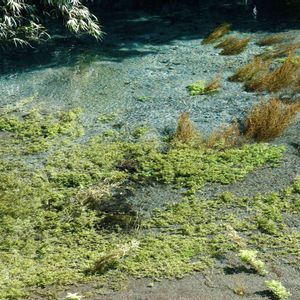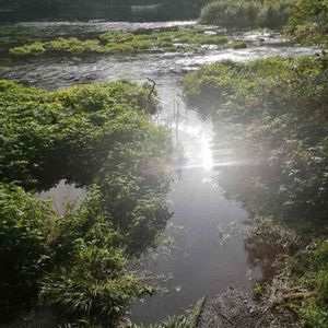 せせらぎは柿田川となりますが、1.2㎞の日本一短い一級河川だそうです。 あっという間に狩野川へ合流してしまいます。 川面に見えるのはミシマバイカモ。 花時なんだけど、保護区だから近くまで行けないのが残念。 たくさん撮ったけど、チョイスに悩みます。