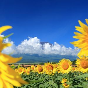 こんにちは𓂃𓈒𓏸︎︎︎︎🌻🌻🌻 先日、富士山🗻を背景にひまわり畑🌻🌻🌻を撮るために山中湖花の都公園へ行って来ました♫🚗³₃ 5枚あります♪ ……が !! ご覧の通りこの日の富士山は顔出しNGだったのか、ずっとこの状態が続いて拝む事が出来ませんでした〰️(>_<)💦 ①雲の合間から少しだけ顔をのぞかせた富士山🗻と🌻🌻🌻 ②戦隊シリーズ風に並んだ🌻たち ③向日葵の間からこんにちは 🌻🌓🌻 ④やっぱり☁️の中 ⑤最後は接写で🌻 明日から通常営業(¯▽¯ )💦 怪我のないように頑張ります (ง🔥🔥)งガンバルゾ〰︎︎!! 🗓撮影日:25.8.15 📍場 所:山梨県南都留郡/山中湖花の都公園