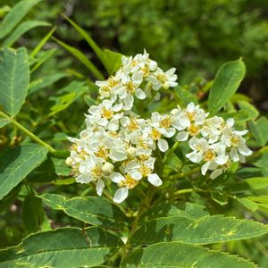 💐今日のお花💐〜ナナカマド〜 (七竈) バラ科 1️⃣2️⃣3️⃣ 白い花🤍 空気冷んやり雪渓そばで青空映え💕 4️⃣ 緑の実になりかけ♪ 唐松岳登山道にて〜2025 7/31〜8/1 撮影 5️⃣ 燕岳バックに赤い実❤️ 燕岳登山道にて〜2024 10/10 撮影 登山で出会えた思い出の花と実です💕