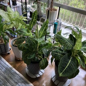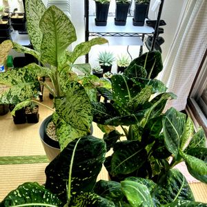 ディフェンバキア大株軍団🪴 サブライムさんが花芽カット後完全に調子を崩してお迎え直後の迫力はどこへやらな寂しげなボリュームになってます😅💦ただ、花芽カットしたところからやっと新芽が出てきたので一安心です😮💨🌿 株分けしたリフレクターさんはめちゃくちゃ元気に新芽バンバン出してます🌿🌿🥳このままだとまた株分けしないとダメなくらいに大きくなりそうですわ🤣