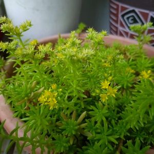 💛マンネングサ(ベンケイソウ科) 朝ドラ📺今週のテーマ花 マルバマンネングサ ではないとはわかるのですが(葉が丸くないから) メキシコマンネングサなのかな〜? アップお許しを💓 道端で採取して、鉢の中でワサワサに繁殖〜4月末のpic、今は少し残して抜きました🤣