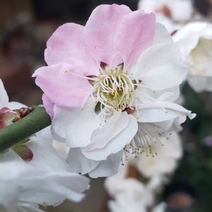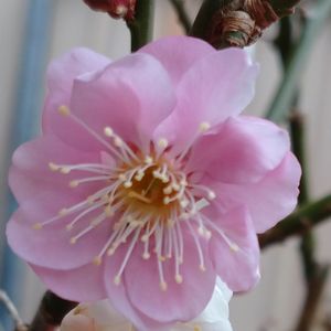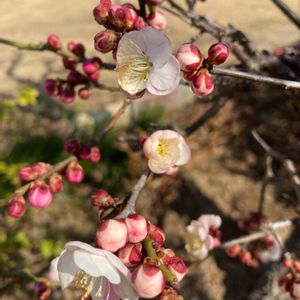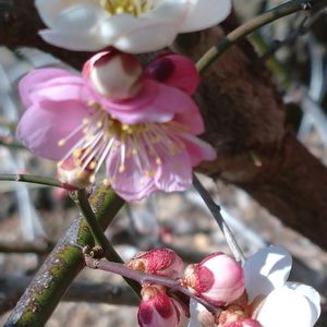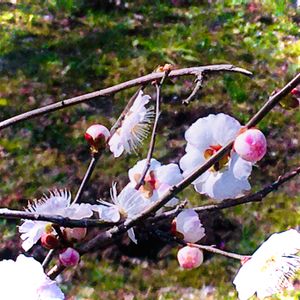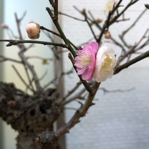 おはようございます。 梅 「思いのまま」 1本の木に2色の白とピンクの二色咲きです。 3メートル以上に育ってます。お嫁さんの実家の庭