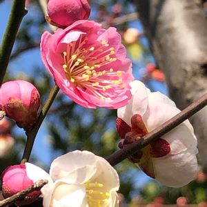 ひとつの梅の木から ピンクとホワイトの花が🔴⚪️ 『おもいのまま✨』と言う 名の梅です(*´▽`*)✨綺麗だったー 梅の香りも楽しみました🌺