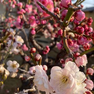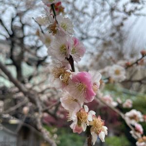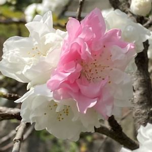 ご近所の、 梅の鉢見せてもらいました😃🌸 思いのまま⁉️だったかしら? ピンクと白が、1本のに咲くなんて 素敵ですよね。😊💖🌸