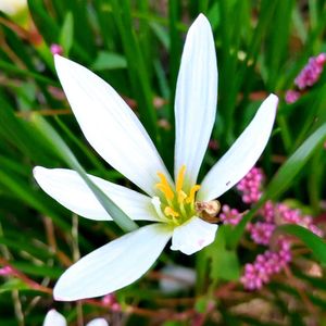 今日のお花 🍀タマスダレ ヒガンバナ科 ゼフィランサス属 ゼフィランサスとも呼ばれ身近な植物 イヌタデとタマスダレの仲良しshotが愛らしい!