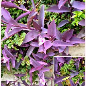 ①綺麗な💜紫の葉と可愛い🩷ピンクのお花💜ムラサキゴテン🩷初めましてのお花にバッタさん🦗見ーつけた😁 ②まだ元気に咲いてます🌺 ③いつもお参りする⛩️で…🤍マタスダレ ④🩷センニチコウを撮ろうとしたらにウラナミシジミが飛んできました😊