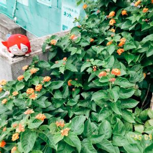 こんにちは😃 晴れ☀️ 地植えのランタナが 楽しそうに咲いています🎶 可愛いな〜😍 散歩道、マンションの植栽🤳 良い一日を❣️🎶🤳🍁🤗