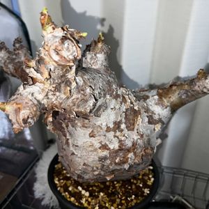 キフォステンマ ウター マクロプス。 寒さに弱いとのことでしたが、なんとか温室に入れなくても初冬を越せたみたいです( ・ㅂ・)و ̑̑ 新芽がチラホラ出てきました。