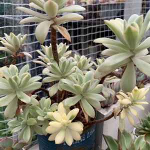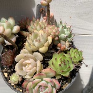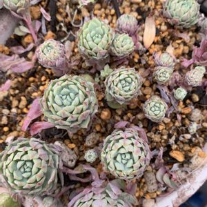 こんにちは😃 23℃/21℃☁️予報 昨日は強い雨と雷に驚きましたが 気温グングン下がり 久しぶりに窓閉めて寝れました😊 今日は多肉にサーッと水遣りをして じっくり観察…‼︎ 水切れ•枯葉は目立つけど とりあえずみんな生きてます👍 ちょこんは、消えてる子も居たけど 許容範囲内😄 底面給水にしようか?悩んだけど 時間足りないので上からシャワー🚿 水滴飛ばしだけはやりました👌 今年はいつも以上に、人間も多肉も 水分補給しないと本当にヤバそうなので、ちょいちょい水遣りする方向でいます😊 picは成長点から花芽が出てしまった円のその後… 下からお子がいくつか出てきてました♡
