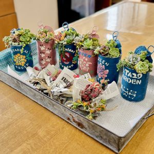 先日 市民講座で リメ缶作って多肉植物を植えよう に9人の応募があり 2名がご高齢の為 体調を崩してしまって 参加が出来なくなってしまいました。 7名の参加者さんと 2週間にわたり2回の講座を 開きました。 皆さん無になり 真剣に取り組んで下さって 途中 笑いありの楽しい一時でした。 どれも素敵に仕上がり 欠席者の作品も ご用意でき 楽しい講座でした。 最後は質問時間になり 多肉の育て方 リメ缶の作り方のおさらいを 兼ねて お話しさせて頂き 皆さんメモをとったりしている姿に ちょっとうるってきてしまいました。 楽しい時間ありがとうございました♡