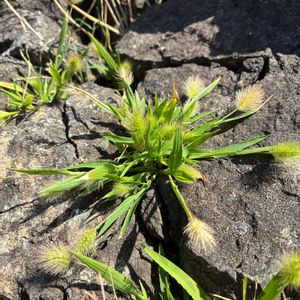 岩に張り付くモフモフ。丸っこくて可愛いハマエノコロ。対照的なトウオオバコは高さ1メートルくらいある?名前は「唐」がつくけど純国産。