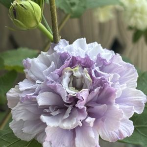 ムクゲ ブルーベリー🌿 1枚目 8月17日 2枚目 9月11日 花友さんから挿し木苗を頂きました❣️ とっても 綺麗💞 でも 花友さんも言われてましたが 蕾がポロポロ落ちてしまって 咲いてくれません🤔 朝夕 水やりしてましたが やっと2輪だけ開花💞 蕾が沢山あっただけに 残念😢 地植え予定ですが 来年は 地植えでも水やりが必須ですね🌟