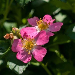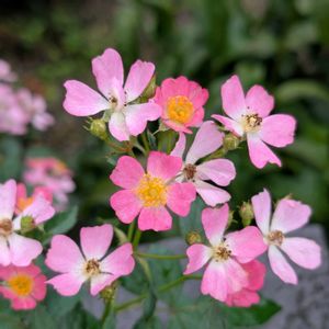 🌸バラ フロキシーベビー🎈🌿 昔プレゼントで頂いた小さなピンクのバラです♪元株と挿し木株を並べて植えたら今年はこんなにもモリモリに- ̗̀( ˶'ᵕ'˶) ̗̀-ウレシ♪♪ 【その他】 花つきがとてもよく、咲きがら切りをしなくても、野ばらのような可憐な小輪花が繰り返し咲きます。黒星病、うどんこ病にとても強いです。 🎈ローズヒップも楽しめるそうです。 2015年アッシュビルベスト樹形賞受賞。四季咲き小輪 修景バラ 作出国: フランス。 作出会社: メイアン。 発表年: 2013 年。 花色: ピンク弁底白。 花形: 丸弁一重咲。 花弁数: 5 枚。 花径: 2 cm。 樹高: 0.5~0.7 m。 樹形: 矮性シュラブ。 芳香の強さ: 微香。