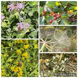 金曜に日本から来ている友人と一緒に公園へ この公園には秋は紅葉の始まる時期に来ることが多いので、今のように紅葉前にはほとんど来ることがありませんでした 時期が異なると植物たちの様子も違うので、記憶とは異なる植物たちに出会えました この公園は、元は大きな農場とその持ち主の家、庭(ほとんど森)のあった場所で、今は寄付された市が管理しています 1枚目 “この場所”にモナルダが咲いているのは知りませんでした いつも来る時期には花が終わっていたからでしょう(左上のピンクの花) 黄色はゴールデンロッド、セイタカアワダチソウだと思います 変わったデザインの種(右側中央)は、何の花の種かは不明 その下の白い花(蕾?)のものかなぁと思っていますが、調べてもはっきりわかりませんでした 2枚目 右側下段の実は黒クルミです いろんな木の実や種が見られるこの時期は花が少なくても楽しめます 3枚目 日当たりの良い場所から少しずつ紅葉が始まっていますが、全体ではまだまだ青く茂っています ピンクはエキナシア、コーンフラワーです 北米原産なのでそこかしこで咲いています 画像では分かりませんが、かなり背が高くなっています 4枚目 毎年調べて忘れてしまう花たち コロンとした黄色の花は初見の気がします ルドベキアの種類っぽいのですが、違うような気もするし 小川付近に群生していました 5枚目 広い敷地はなだらかな丘陵地で、川も流れ見飽きません この川は以前は倒木が積み重なっていたのですが、整備されたようでスッキリしていました 上向きの実(種)が面白いけれど、何の種だか不明です 昔から目印にしていたリンゴの木がなくなっていたり、急斜面に生えていたキノコだらけの大木が見当たらない(おそらく倒れた)など、様子の変化に気づけたnature walk でした