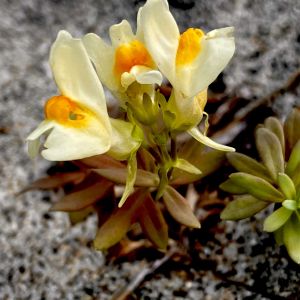 ウンラン(海蘭) オオバコ科ウンラン属 花期は8〜11月 北海道〜千葉県以北の太平洋側.鳥取県以北の日本海側.四国の海岸や川沿いの砂地などに生える多年草! 高さは10〜40cm! 茎は斜上して地を這う! 葉柄の無い厚めの葉を対生.時には3輪生する! 花は淡黄色の唇形花を付け、花筒基部に細長い距が下に伸びる! ①②砂浜では暑さのせいか 葉が赤い ですがしっかり距は見えています! ③砂浜から少し陸のほうでは葉は緑! ④テリハノイバラの葉の間から! ⑤群生の様子! 名前は花が蘭に似ている事からですが 金魚草の仲間です♪ 8月14日撮影 岩手県 普代村