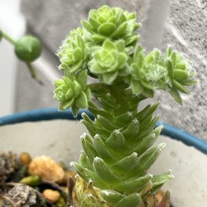 本日の我が家の多肉ちゃんたち。 1枚目 センペルビウムちゃん。 ランナーを沢山伸ばして豊作ですね。 今日見たらランナーから沢山根を伸ばしてて放置は可哀想なので大きなプランターに移そうかと画策中。 2枚目 多分、ツメレンゲちゃんだと思うのですが誰か違うかわかる方居られますか? 隙間を開けて植えた子株達。 なのにもうギッチギチになってきてる…どうしてあげたら良いのか分からなくなってきました。 3枚目、4枚目 七福神ちゃん。 今年もしっかり花を咲かせてくれました。 葉が大きくなりすぎて可愛げがなくなってきた…かも?(笑)