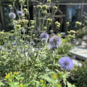 今日は台風なのに ほとんど雨降らず 日差しも ルリ玉アザミも 元気いっぱい